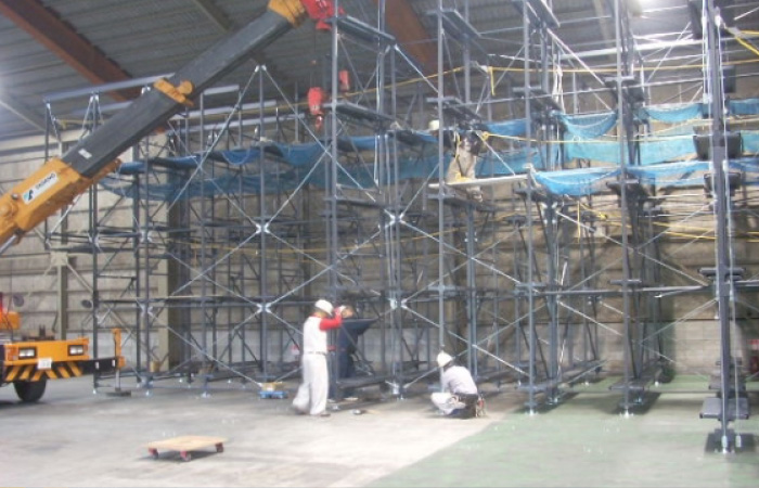 倉庫の増設が困難、在庫品が増大して収納場所がない、商品が混沌としていて作業効率が悪い、などのお悩みを解決します。また、複数のラックを設置しその柱材を利用して床を構成するので、建築柱も建築梁も不要です。